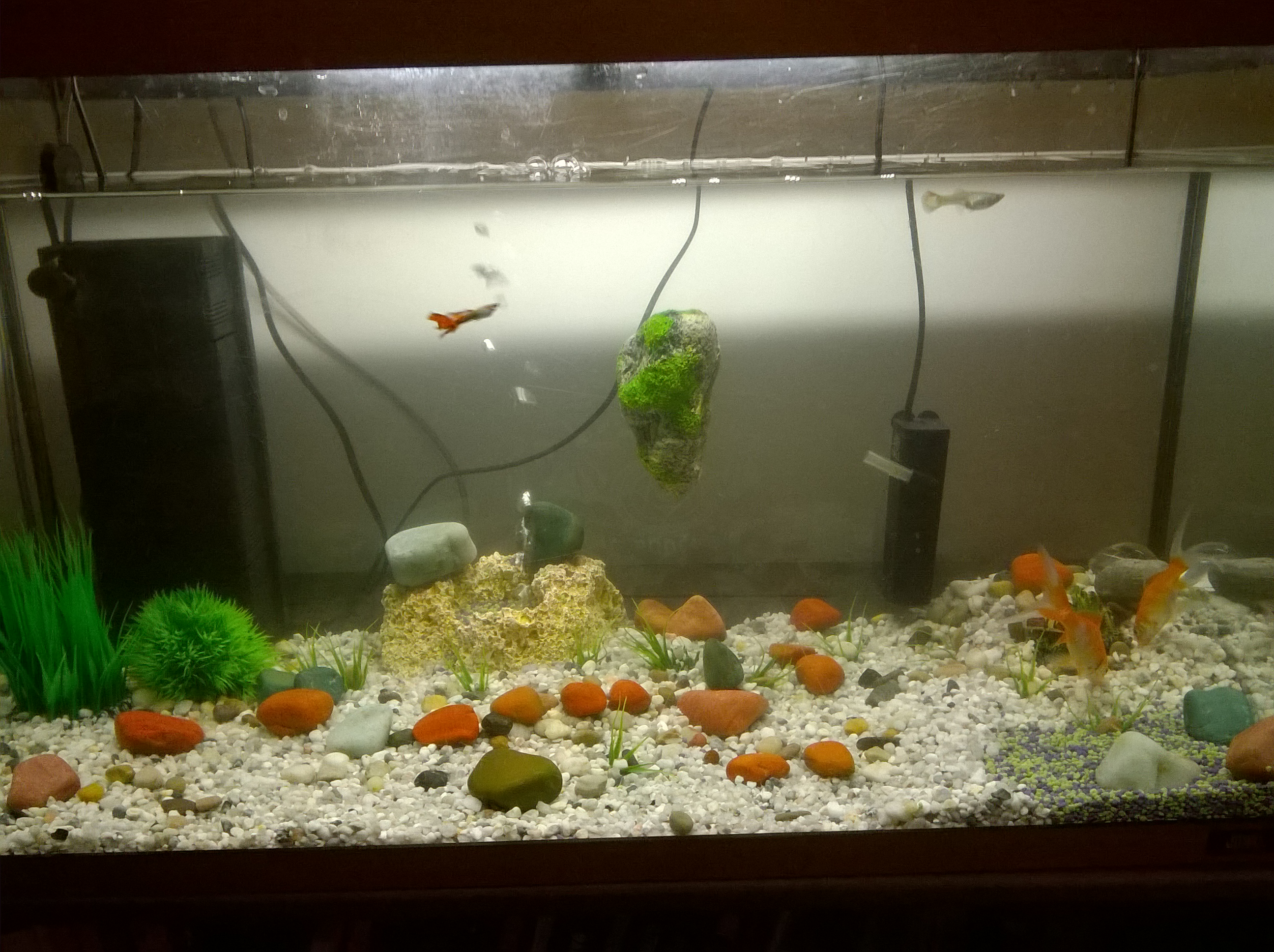 bunaziua... am achizitionat acum 2 luni un acvariu de 100 de litri cu 2 carasi in el... l-am luat ca erau neingruijiti... asa incepator si nestiutor ....dar imi era milade ei..are un filtru cu $ straturi.. nu stiu ce tip ca.. nu am documentatia de la el... si am mai cumparat 4 guppy.... 1 mascul si 3 femele.. una a murit a doua zi...am mai cumparat un acvariu mai mic de la cineva si un filtru de 45 litri,5w dar filtrul il folosesc tot in acvariul mare ..din cite am inteles.. filtrarea interioara nu prea face fata...