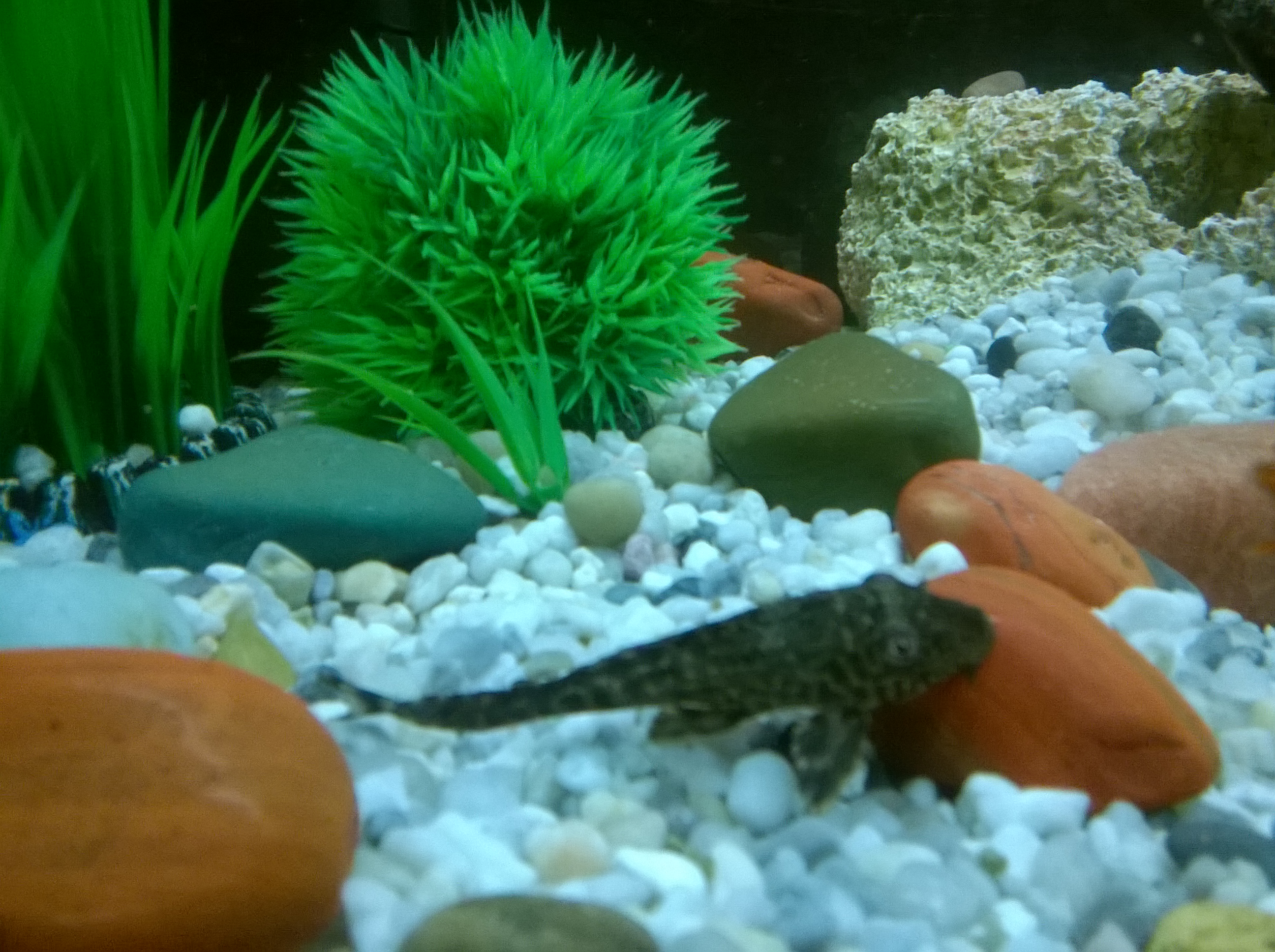 Despre ancistrus...am spus "cred" ca e ancistrus,ca nu mai stiam cum au trecut cei de la petshop,si dupa poze de pe net....am dedus ca e ancistrus.Acolo la pet, acesta era cu carasii,in acelasi bazin si l-am si inbtrebat pe vinzator despre temperatura si a spus ca acesta e pentru apa rece...si am gasit bonul,ei au scris ca e PLECO...eu ce sa mai zic.. cum am vazut pe poze seamana foarte bine cu ancistrus...se vede in filmulet...uite si o poza cu el...