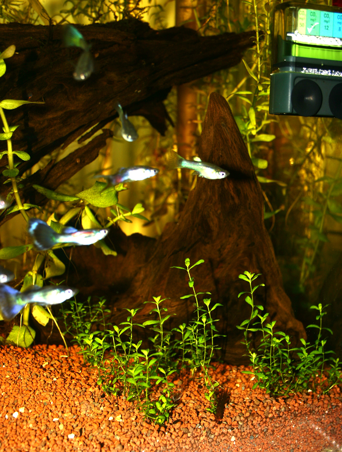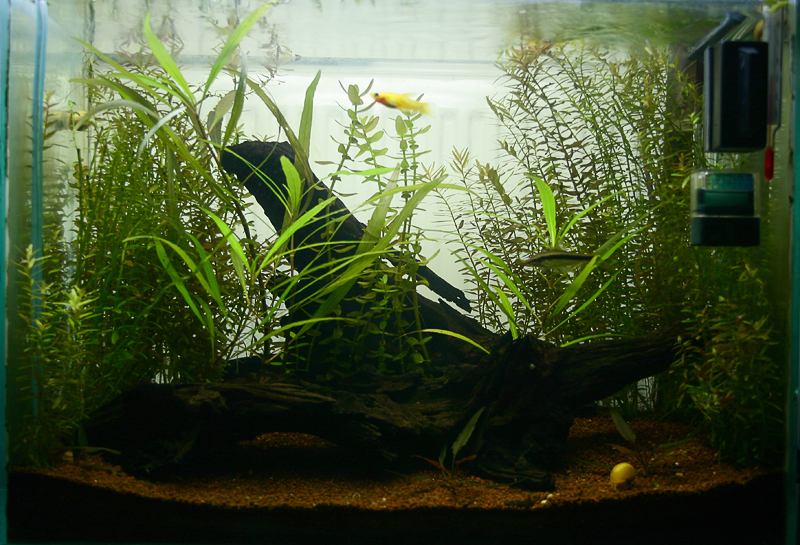 Au trecut sase saptamani fara doua zile de la start, noile becuri fac treaba buna in sensul ca sunt multumit de evolutia plantelor, mai putin de hc care tot are tendinta de inaltare, deci ceva e in neregula. Mai nou, adica in saptamana cat am lipsit, au aparut niste animalute noi, sunt foarte mici, cea mai mare are aproximativ un mm, seamana cu un melc, dar se deplaseaza rapid printr-o pseudo-inotare ajutandu-se de curentii de apa, presupun ca sunt la inceputul unei invazii, sa-mi fac griji in privinta asta ???