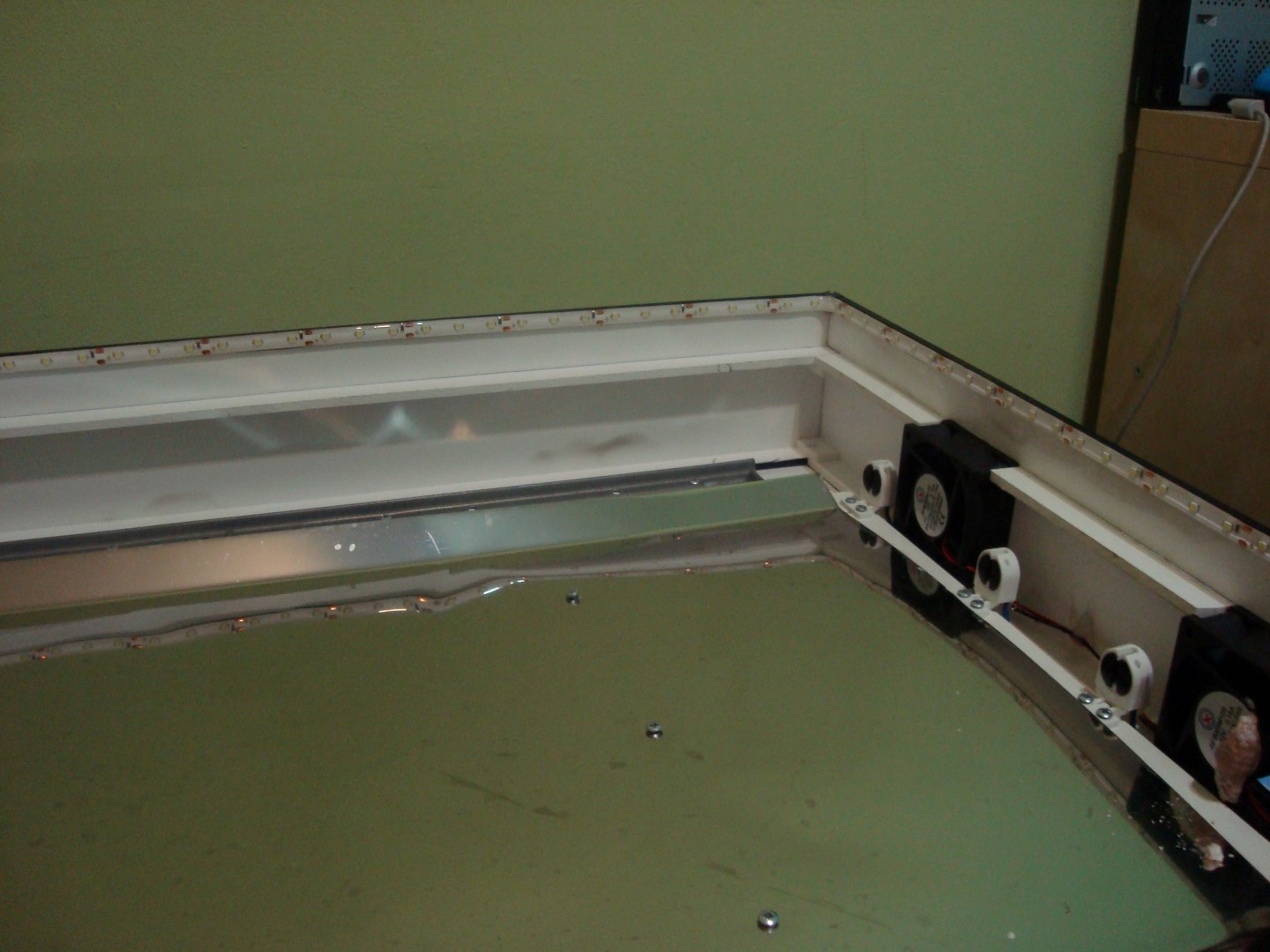 surubul vine de jos in sus, tocmai ca sa nu se vada capul surubului din afara. Uite-te la poza asta poate intelegi mai bine. Acolo eu am un reflector comun, iar tu vei avea un reflector la un neon. Suruburile la mine sunt puse in alta pozitie ca am avut spatiu la dispozitie, iar tu vei prinde suruburile exact sub neon. Clemele de prindere neon-reflector lasa suficient spatiu pentru un cap de surub cu saiba
