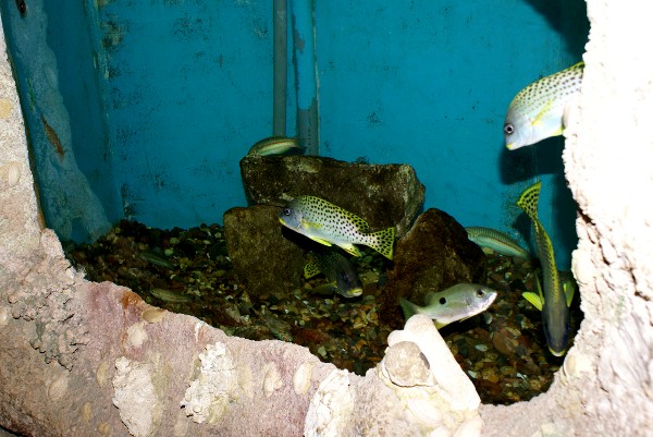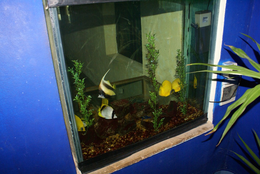 Acvariile din Acvariul public El Gouna semana dpv dotari cu inceputurile acvaristicii marine practicate prin magazinele din Drumul Taberei. Departe de tehnica si echipamentele pe care le poti vedea la lucru in showroom-ul Reef (spre exemplu). Nepretentioase, bazinele expun in general pesti. Desigur, consumatorul de rand probvabil este satisfacut (pesti galbeni, pesti marisori). Nimic pretentios in bazine. Dealtfel nici in Hurghada nu se incurca cu nevertebrate dar parca nici chiar asa. Am ratat cateva bazine (adica nu le-am fotografiat), in general cele cu pesti de talie mica. La fel si bazinul cu carasi aurii ;)