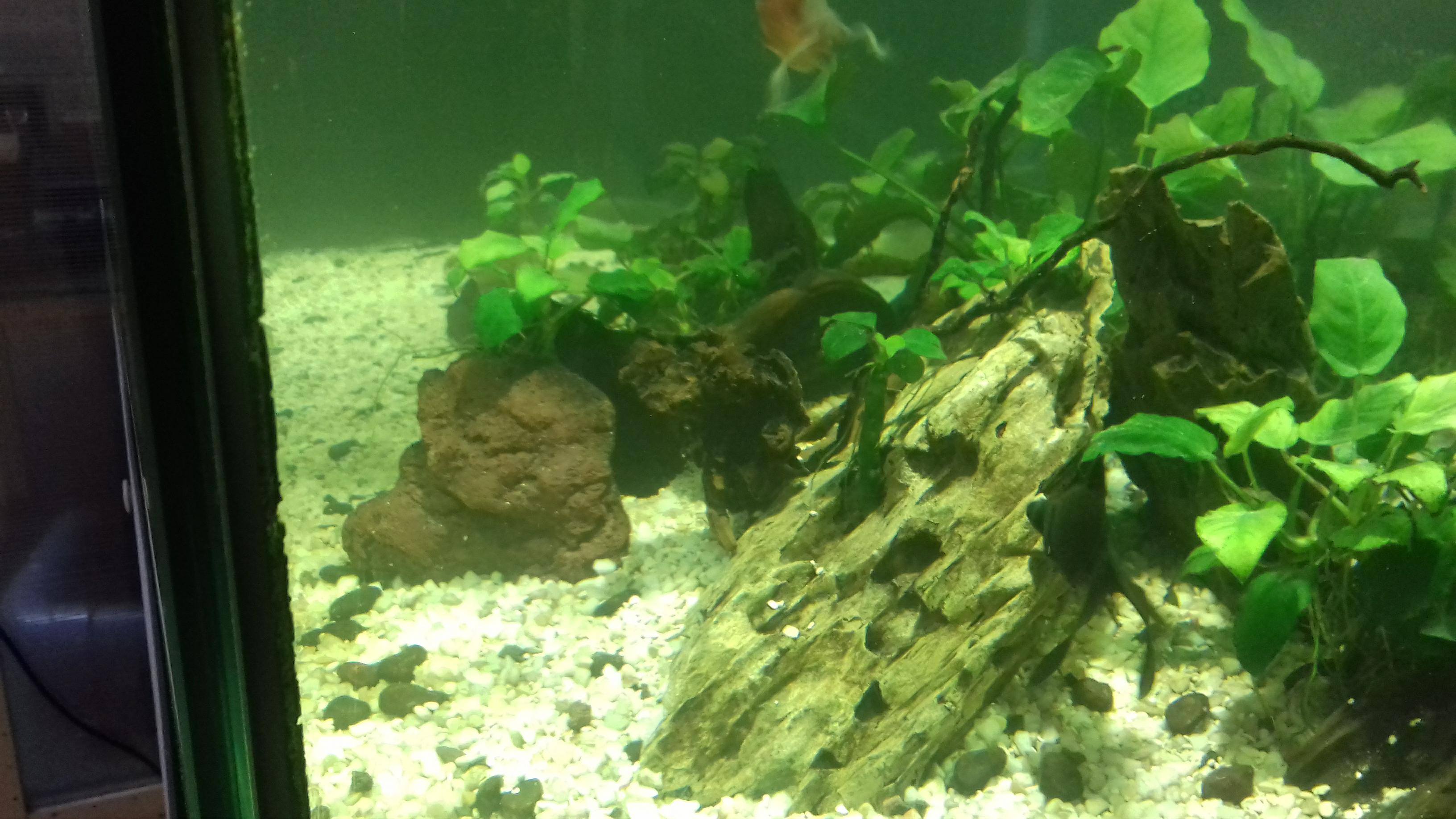 Dupa cum am spus,am acele reflectoare led 60W unul... pe cele 2 pe care le folosesc am pus o folie de plastic un galben-portocaliu...aproximativ culoarea de la lampile de iluminat stradal.La inceput culoarea,era prea dura,asa ca am facut niste decupaje pe folie ca sa las mai multa lumina alba...si surpriza....GSA a inceput sa dispara de pe frunze si radacinile de la anubias... si folosesc si fertilizant universal Plant ProFe7 de la Aqutic nature,bine nu folosesc mul.. pun 5 ml pe saptamana... plante easy..doar anubias