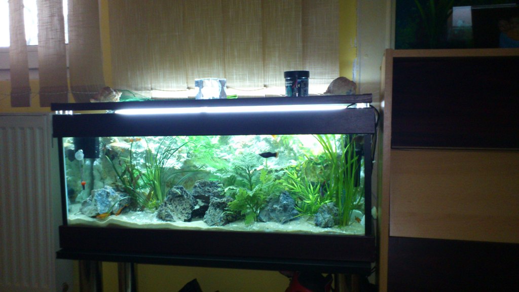 Salut Luciano si felicitari pentru evolutia acvariului. Imi dau si eu cu parerea legat de pozitionarea acvariului, nu de altceva dar vad ca nimeni nu a zis nimic pana acum legat de lucrul asta...si anume mi se pare ca acvariul tau este mult prea aproape de o sursa de caldura (este la o palma de calorifer) si de o sursa de lumina (este chiar sub fereastra) ceea ce o sa-ti genereze probleme in viitor. Caloriferul in perioada rece, cand este in functiune, o sa-ti urce poate mai mult decat vrei temperatura din acvariu si lumina o sa fie o sursa generatoare de alge. Poate mai sunt si alte efecte secundare dar nu-mi vin in minte acum. Mult succes in continuare