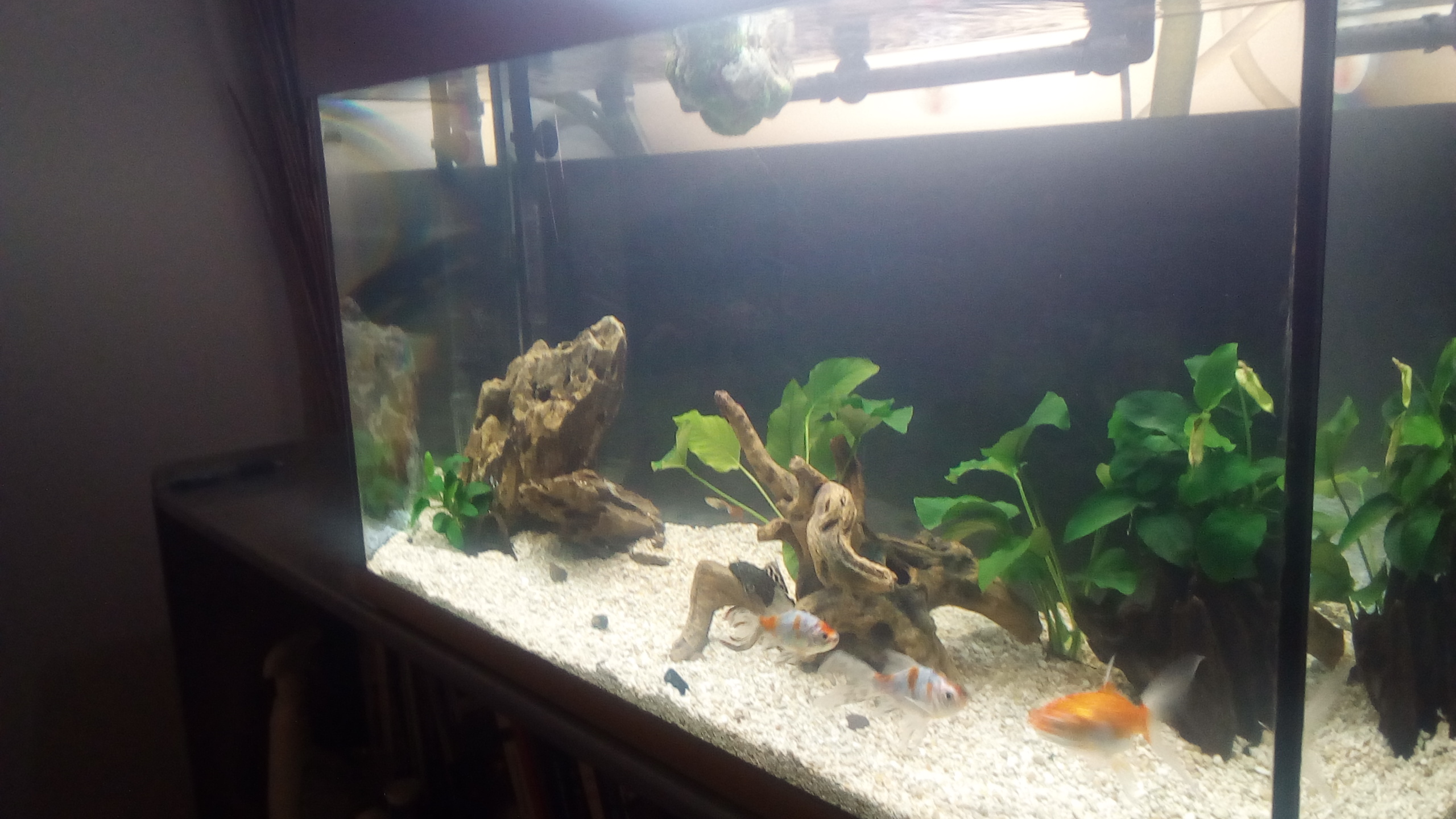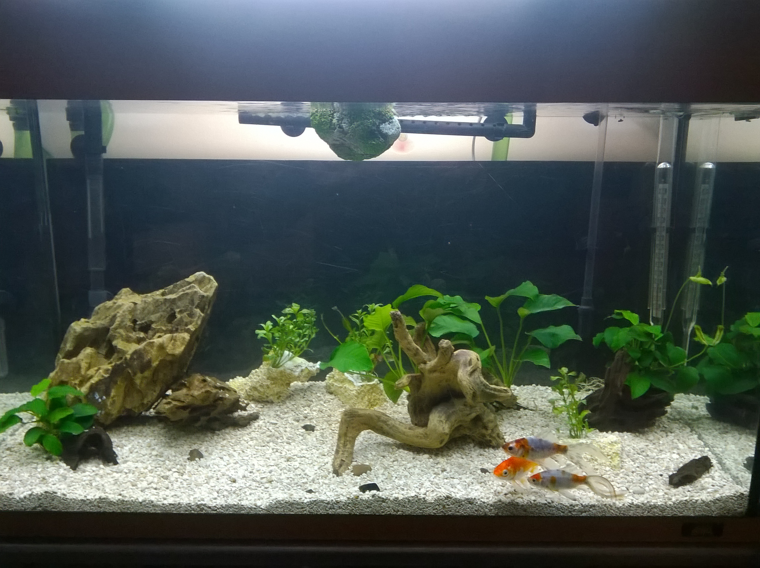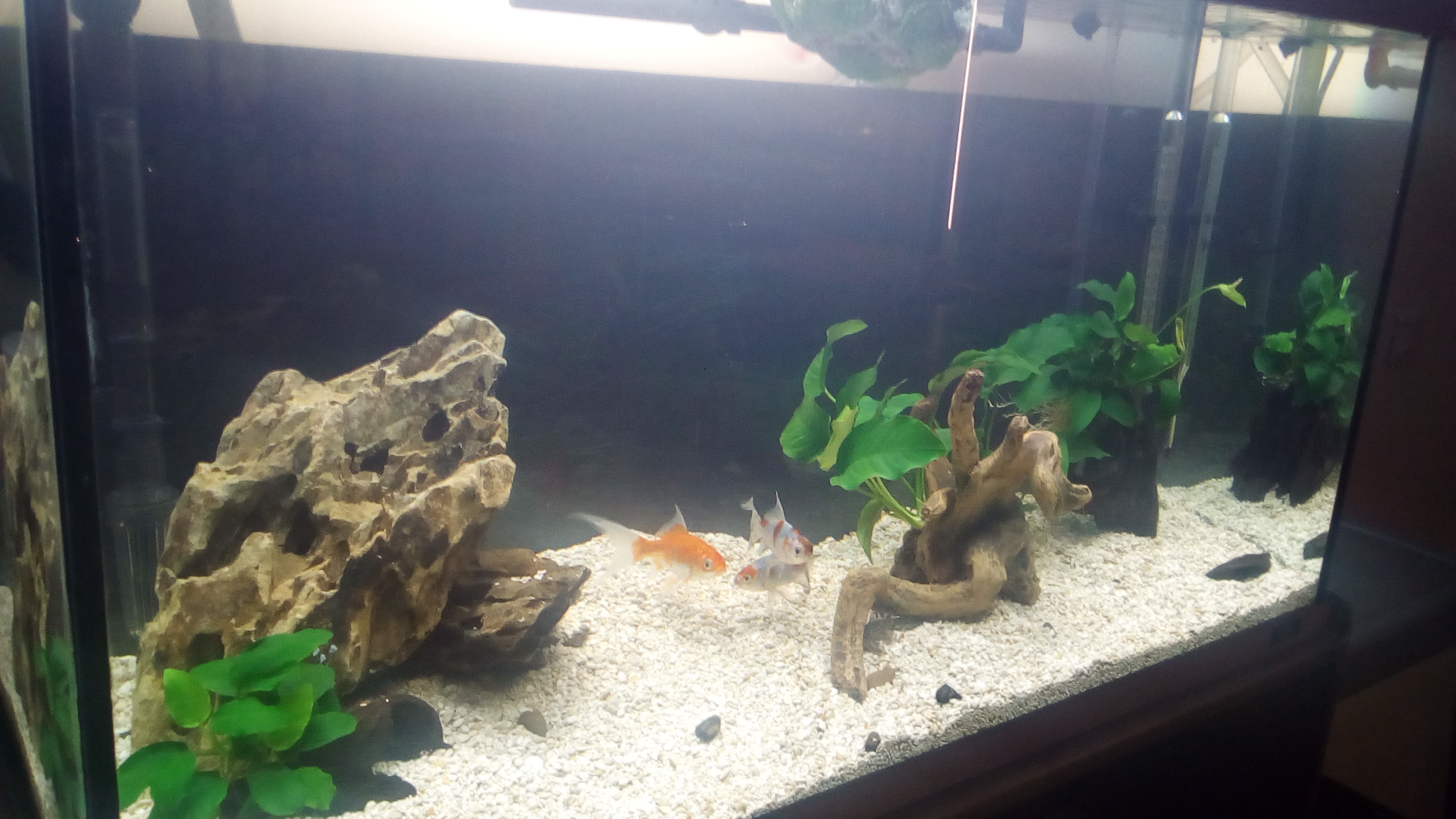 na ca am rearanjat decorul..chiar ca e aiurea cu latimea asta a acvariului...bine ca nu am cite as vrea,\.... dar o sa mai cumpar si in timp o sa se schimbe
