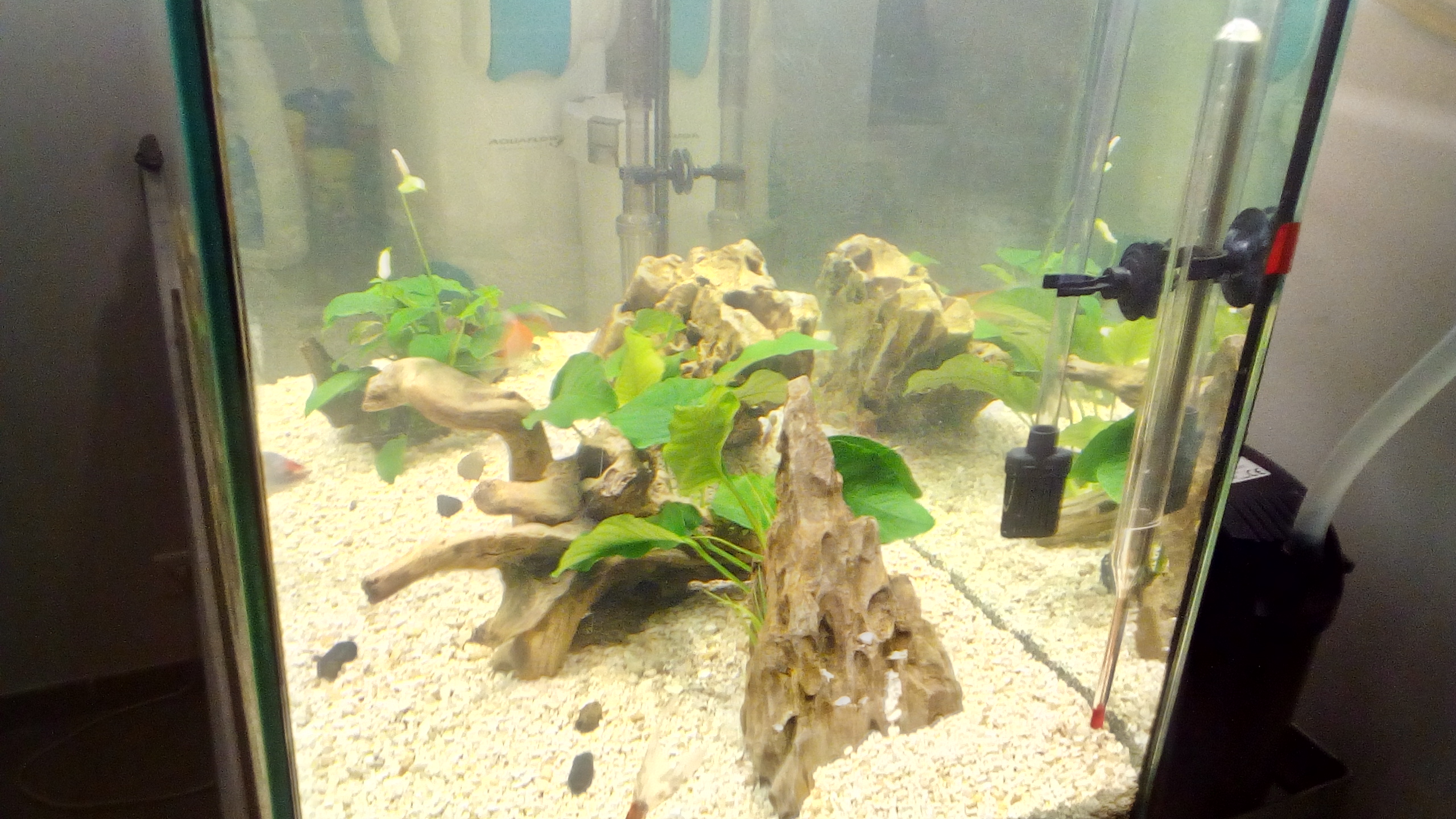 plante am doar anubias iar pietrele chiar ma gindeam..macar pe cea din stinga sa o ridic.... parca prea s-a iprit totul a nu nivel...si am sa le ridic pe amindoua ceva mai sus... normal asa ma gindisem.. in partea dreapta planta sa fie cumva la baza pietrei...