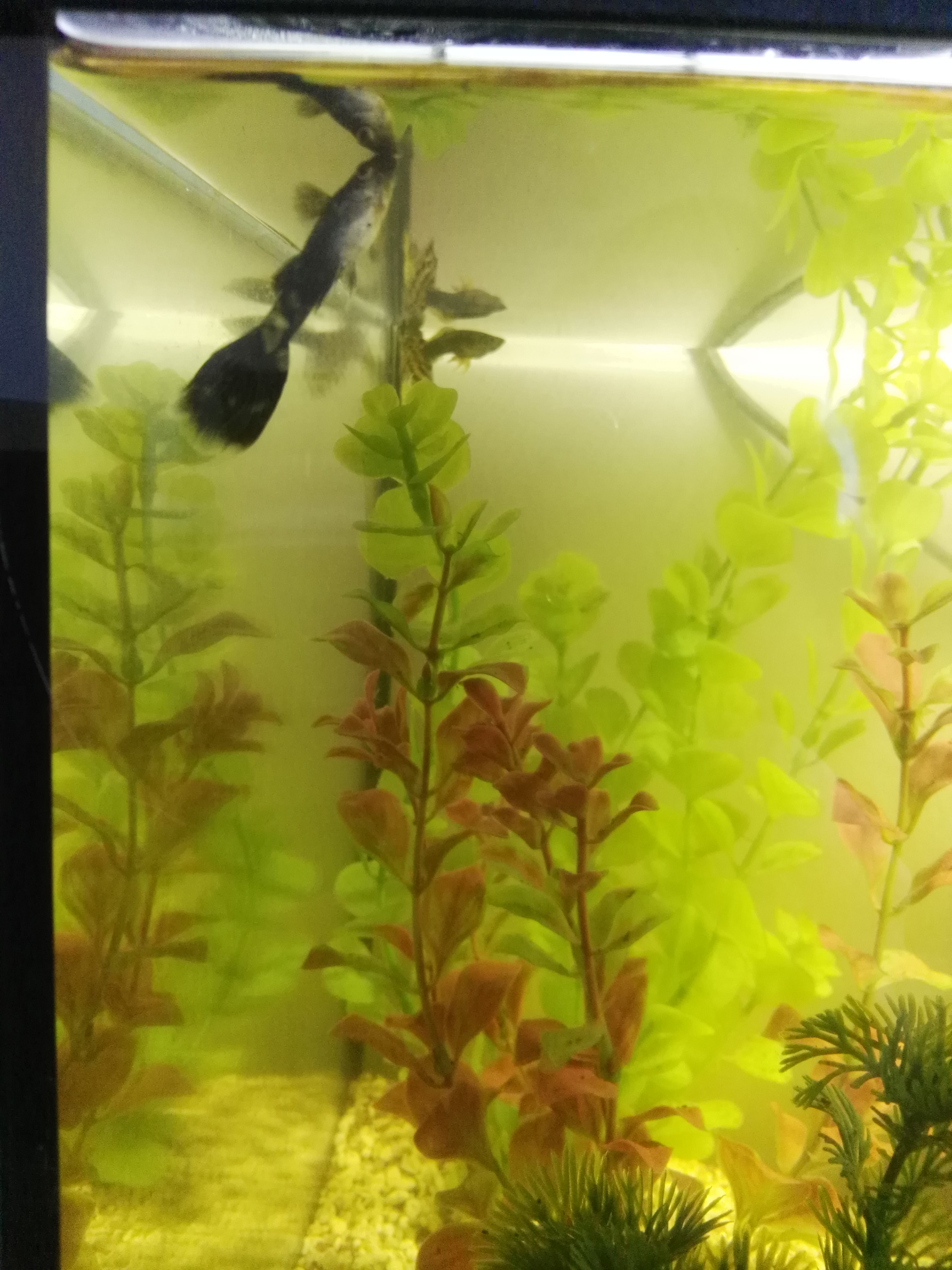 Buna! De vreo 2 zile am un pestisor guppy care se poarta mai ciudat. Sta destul de drept, nu prea se misca si am impresia ca are un ochisor mai intunecat decat celalalt. Va atasez niste poze ca sa va dati seama mai bine. Aveti idee ce se intampla? Este bolnav? Ce pot sa ii fac ca sa il salvez?
