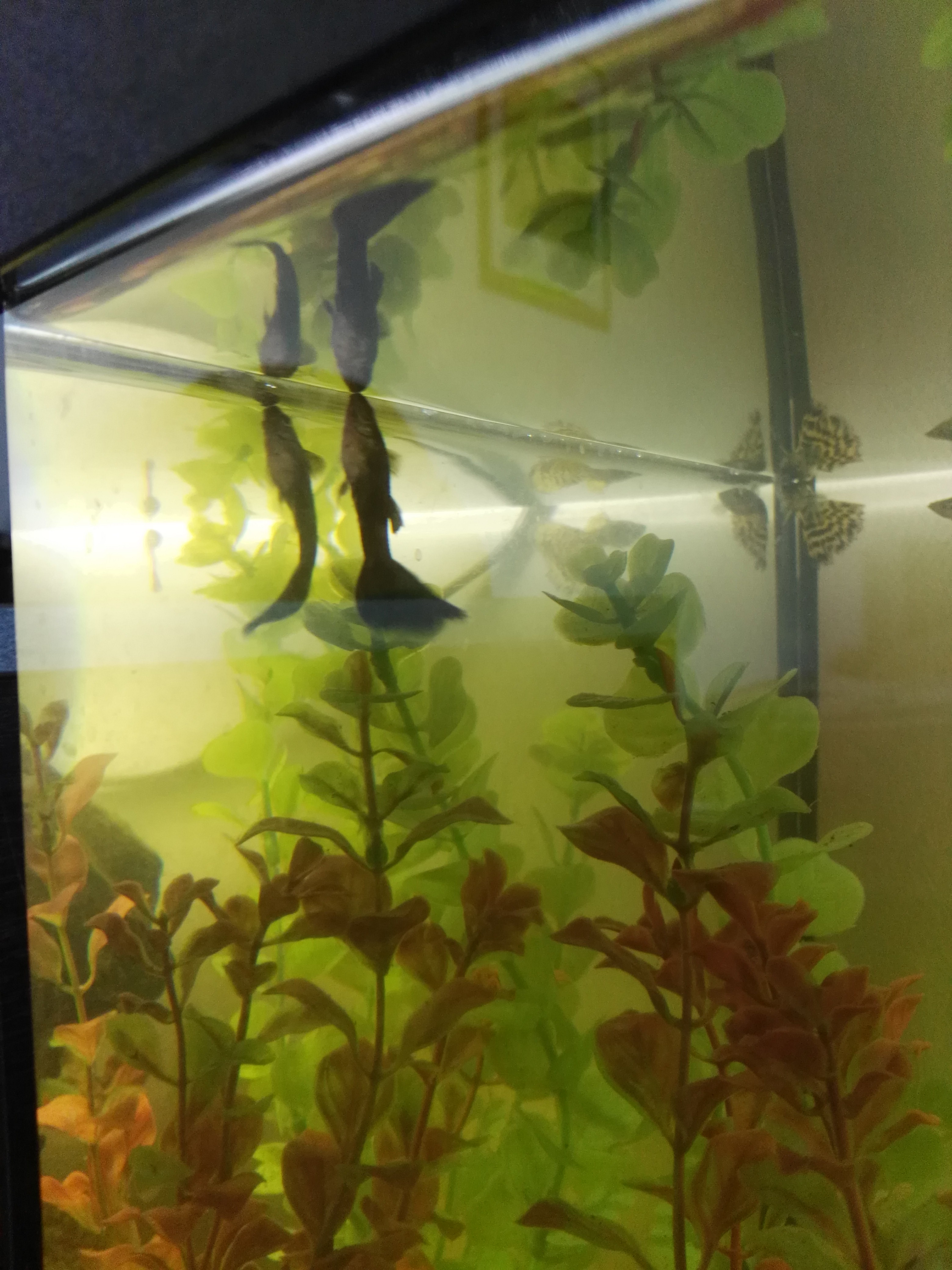 Poate nu vad bine in poza dar ... nu prea se misca apa la suprafata acvariului!