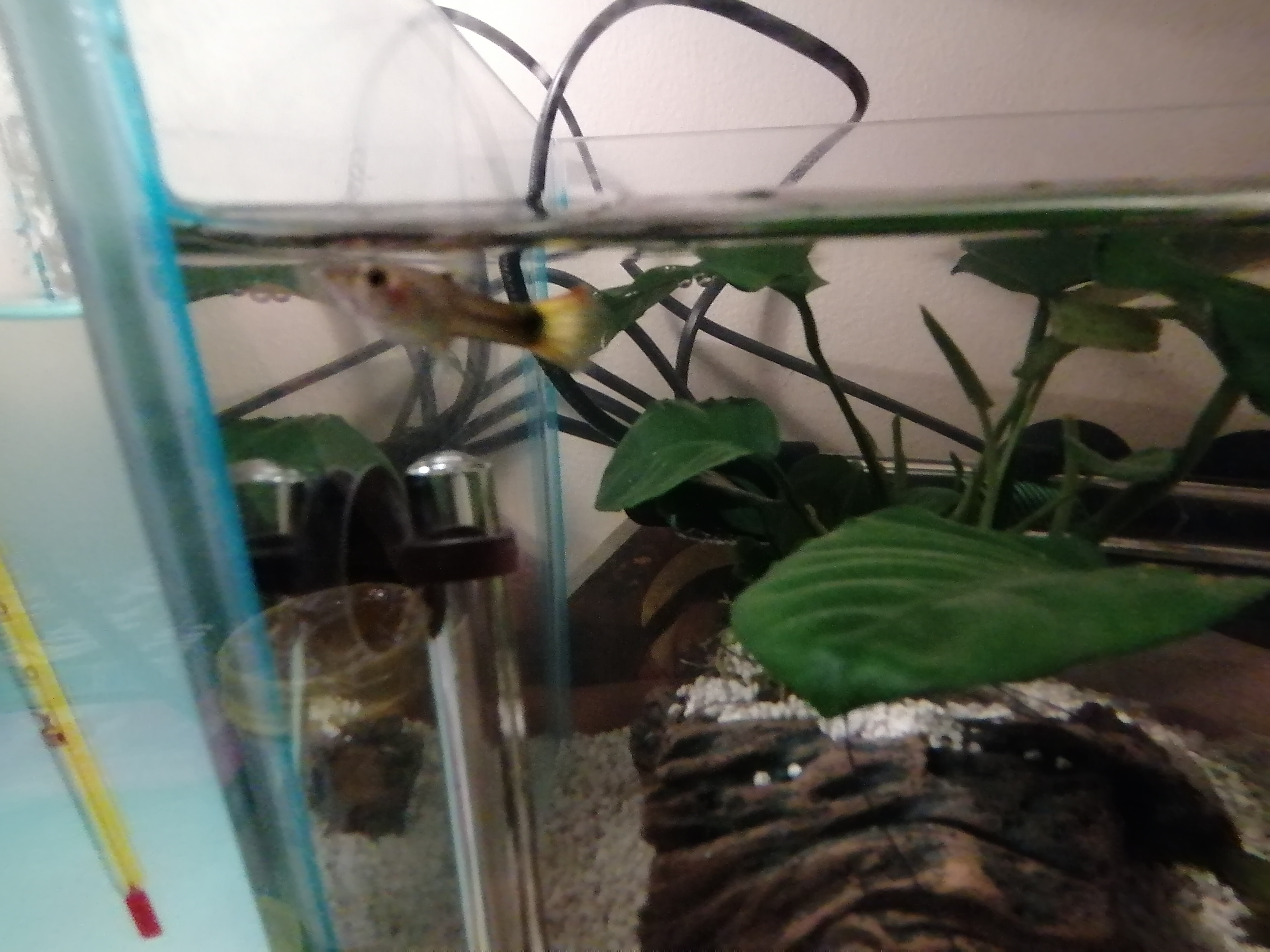 Guppinul are pata neagra, burtica semi mijlocie dar tot cu 2 pui am ramas.... Mai face pui?