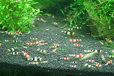 Intervalul la care fac pui este intre 3 si 5 saptamani, depinzand de temperatura si compozitia apei. Cand crevetii se nasc, sunt ca si variante in miniatura a celor adulti pana la cel mai mic detaliu - culorile rosii si negre si dungile albe. Cateva saptamani mai tarziu, acvariul meu era prosper si plin de bee shrimp asa ca am decis sa instalez mai multe acvarii cu aceste creaturi fascinante.