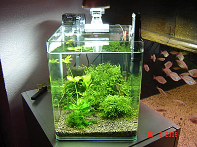 Pentru ca stiam dinainte ca urmeaza sa primesc crevetii, cu doua saptamani inainte am instalat un Cocoon 2, care a asteptat linistit primirea noilor chiriasi . Apa nu continea nici nitrati, nici fosfati, nici amoniu, nici alte elemente toxice. Aceste valori sunt foarte importante pentru ca bee shrimp sunt foarte sensibili la cea mai mica urma de poluare toxica sau organica. Pentru a ajunge la acesti parametri ai apei, acvariul a fost umplut cu apa de osmoza amestecata cu apa de robinet.
